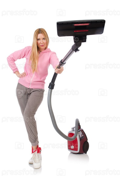 Молодая женщина с пылесосом