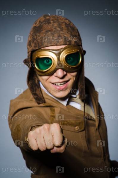Смешной пилот в очках и шлеме