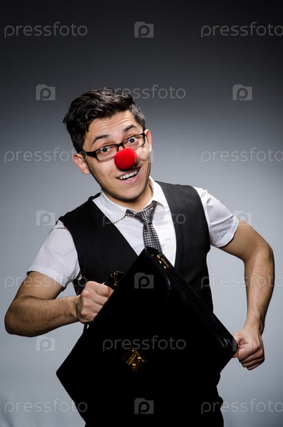 Смешной бизнесмен с клоунским носом