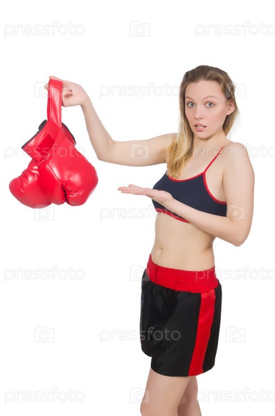 Женщина боксер на белом фоне