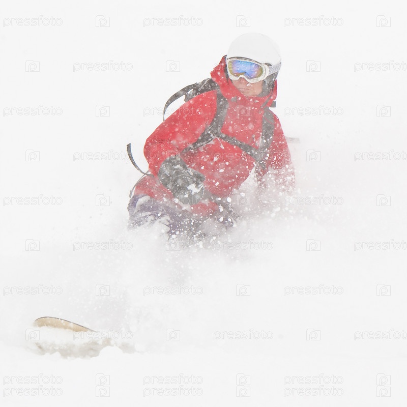 Фрирайдер на снежном спуске