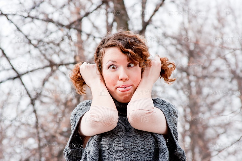 Молодая женщина корчит рожицы на природе
