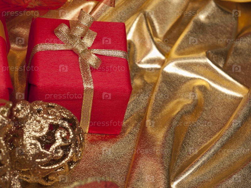 Рождественский натюрморт с украшениями и подарком