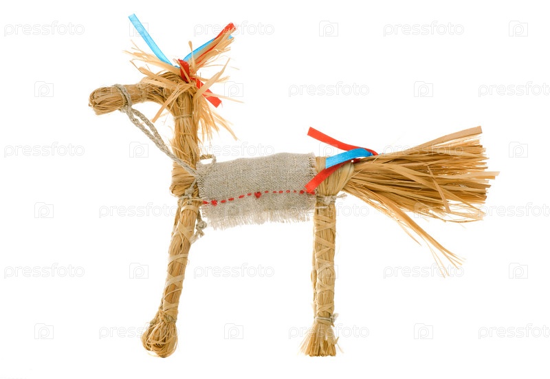 Соломенная лошадь на белом фоне