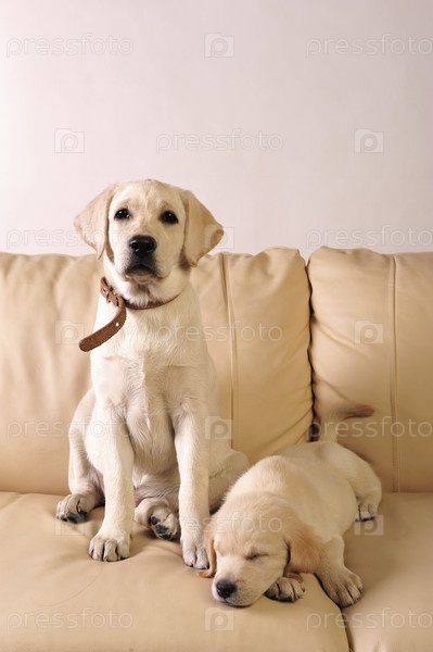 Милые щенки лабрадора на диване