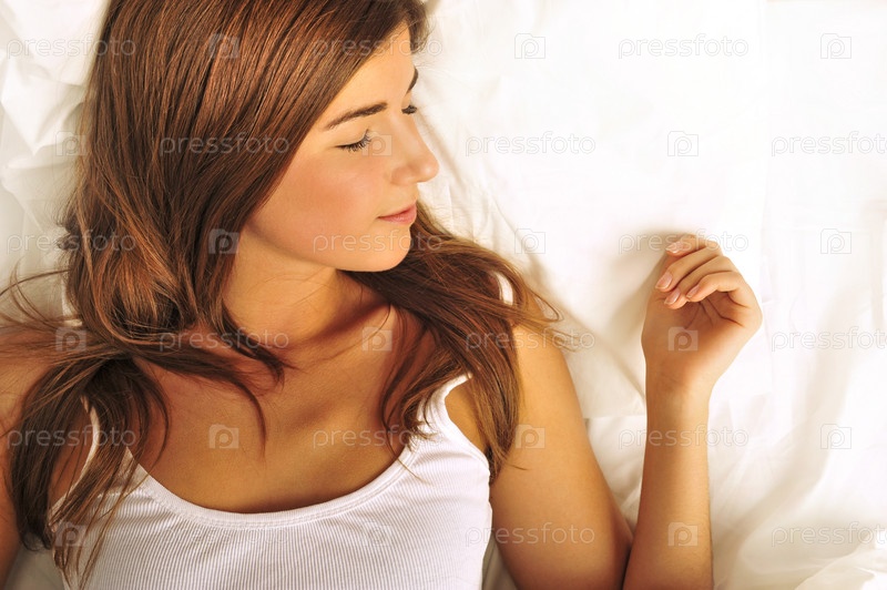 Красивая женщина спит, лежа на кровати