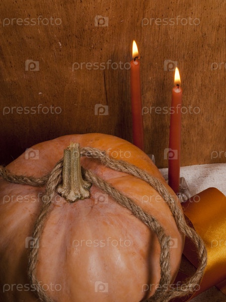 Натюрморт с тыквой и свечами