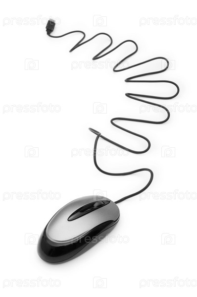 Компьютерная USB-мышка с крупным планом на белом фоне