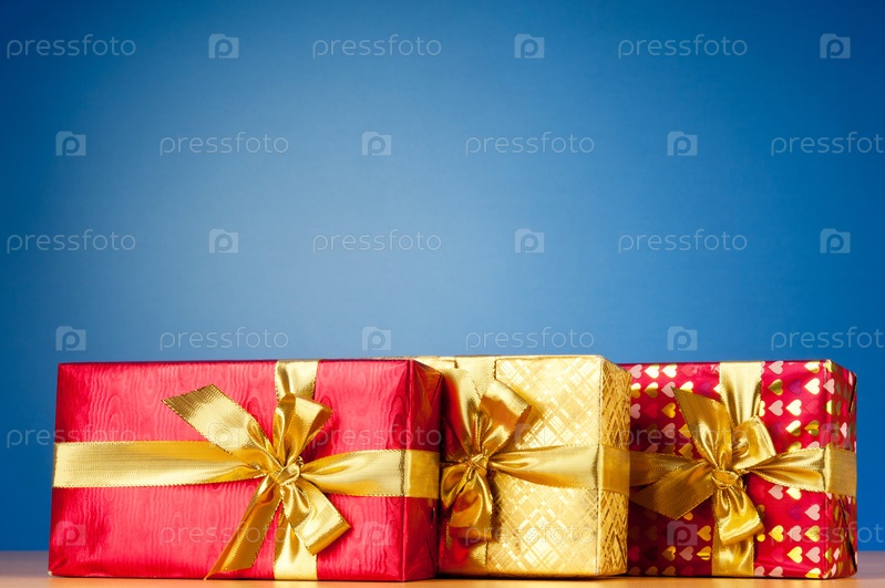 Три коробки с подарками на синем фоне