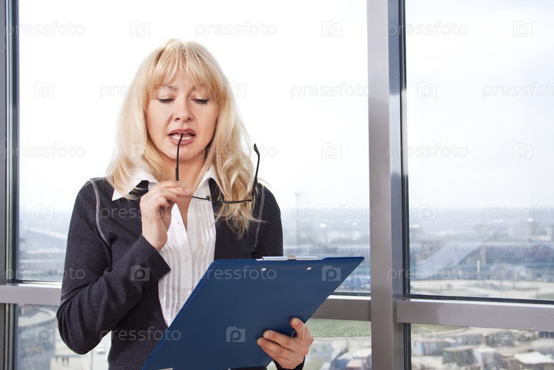 Бизнес-леди, читающая документы