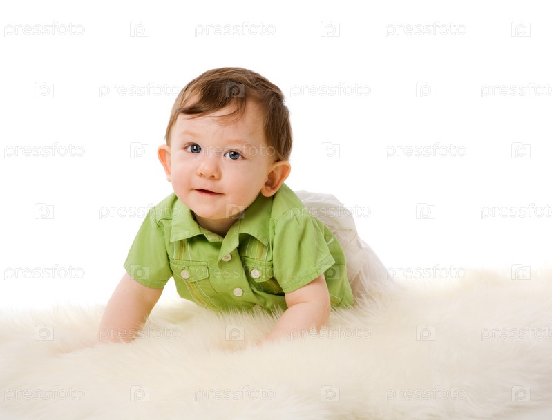 Маленький мальчик, лежащий на белом мехе