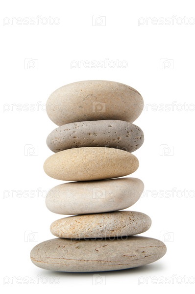 Стопка морской гальки на белом фоне крупным планом