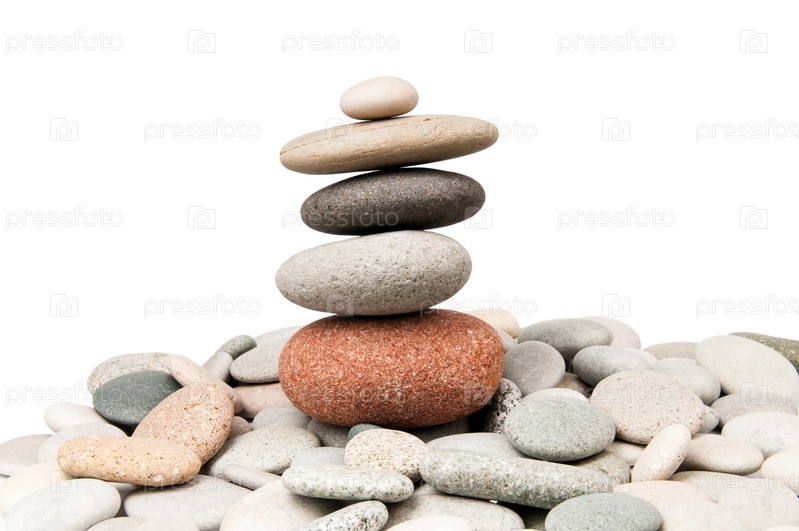 Разноцветная морская галька на белом фоне крупным планом