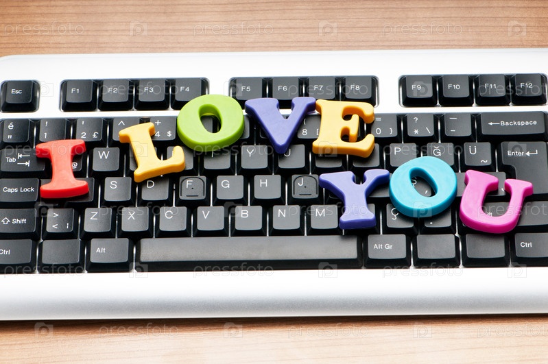 Надпись "Я тебя люблю" из разноцветных букв на клавиатуре