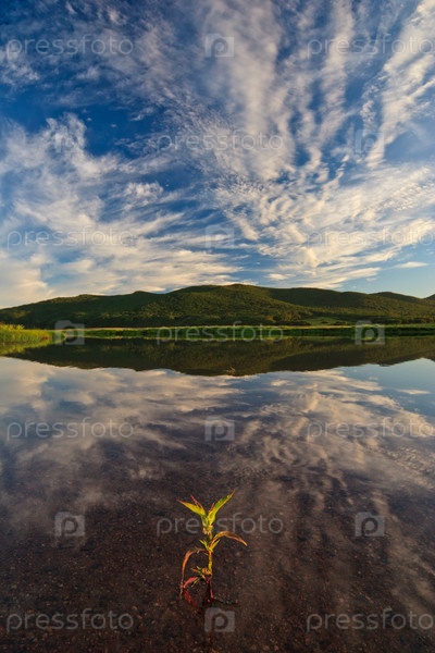 Красивый летний пейзаж с отражением в воде