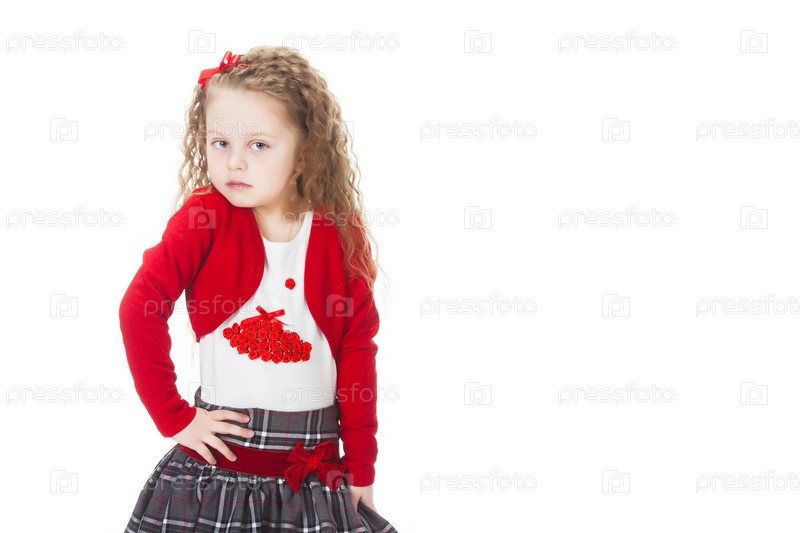 Симпатичная девочка с длинными кудрявыми волосами на белом фоне