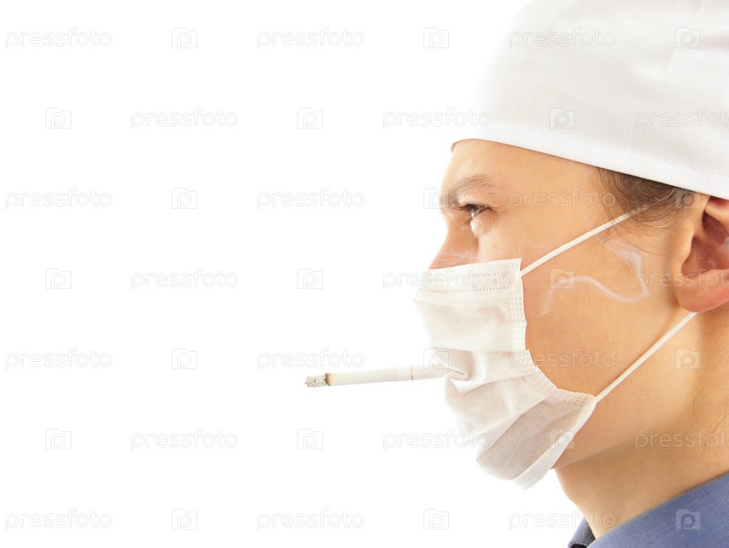 Портрет молодого врача с сигаретой на белом фоне