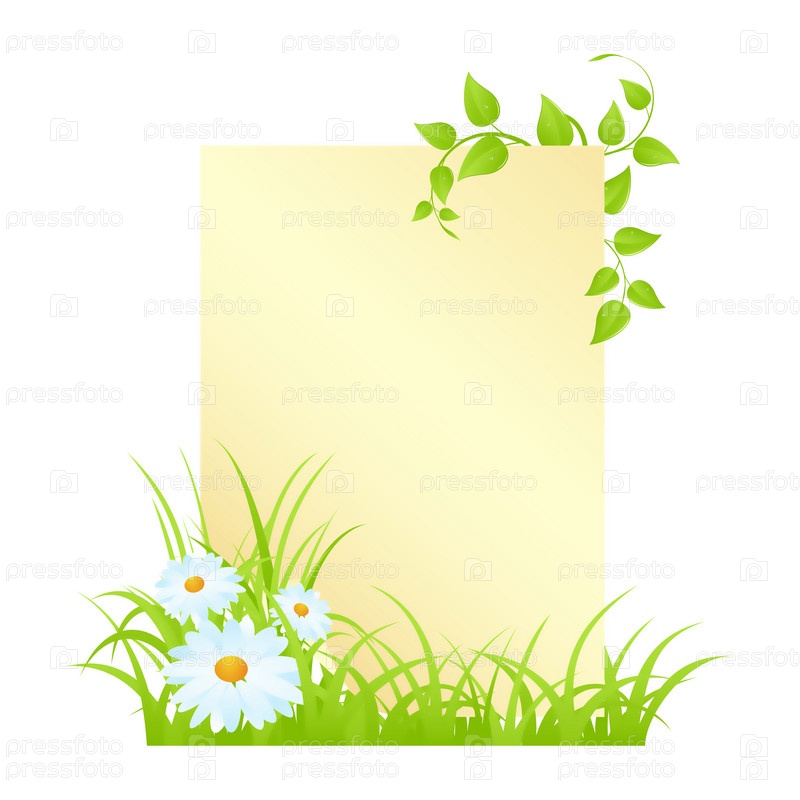 Листок бумаги с ромашками и травой