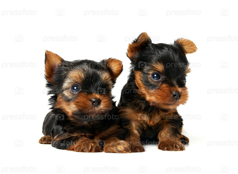 Щенки Йоркширского терьера на белом фоне