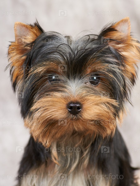 Йоркширский терьер на сером фоне