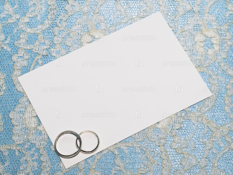 Белая карточка для поздравления с обручальными кольцами на кружеве