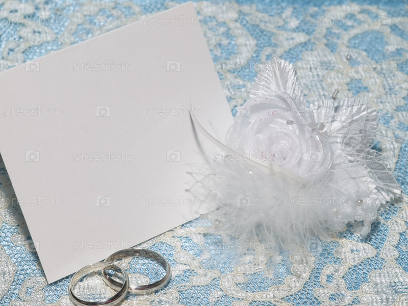 Белая карточка для поздравления с обручальными кольцами на кружеве