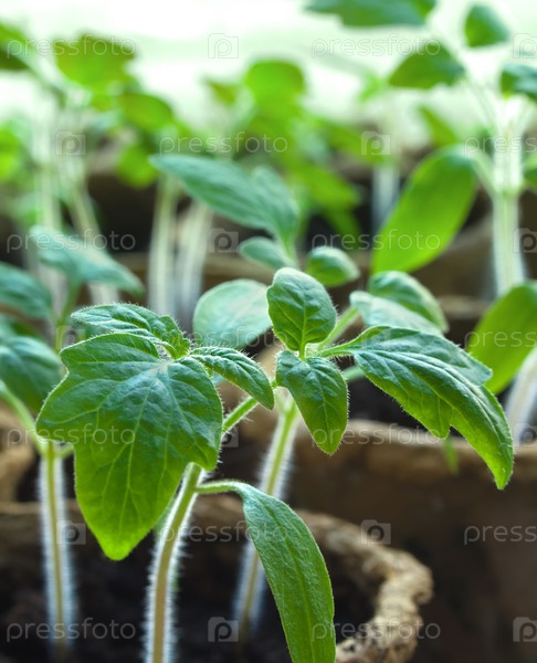 Молодые всходы рассады томатов