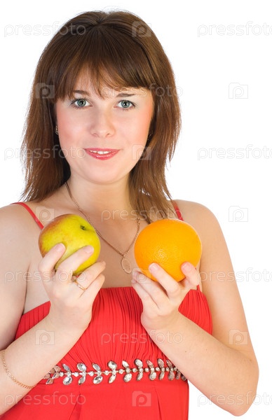 Женщина с яблоком и апельсином