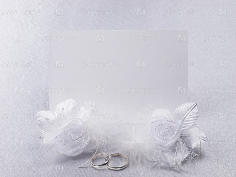Белая карточка для поздравления с обручальными кольцами на кружеве