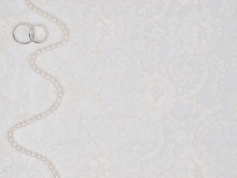 Обручальные кольца и бусы на белом кружеве