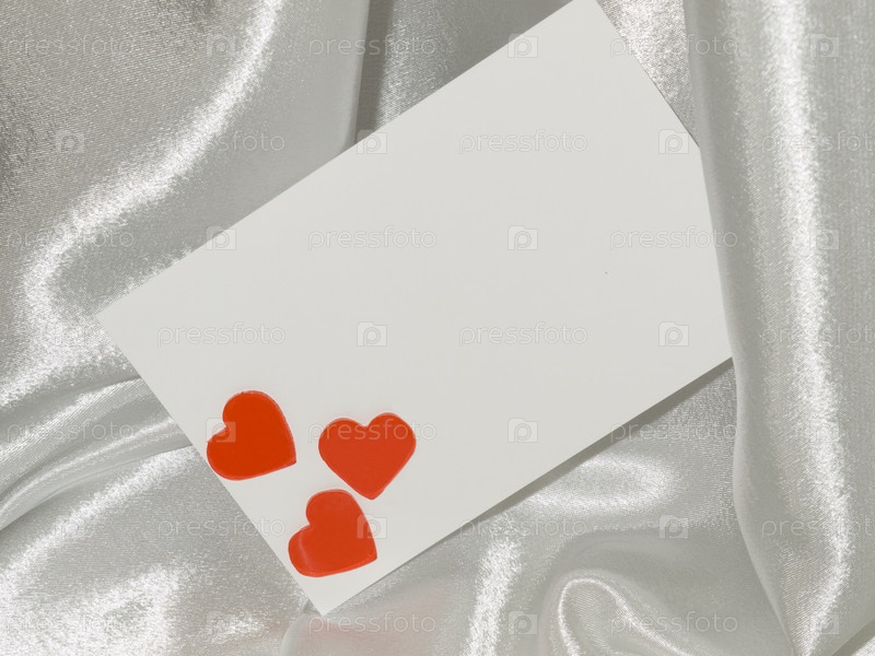 Белая карточка с сердечками на шелке