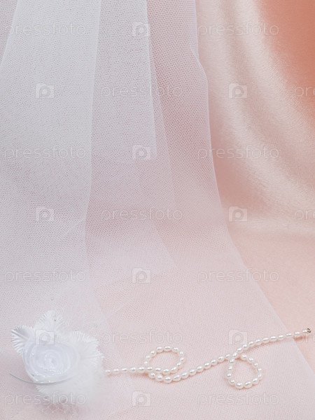 Бутоньерка и бусы на розовом шелке