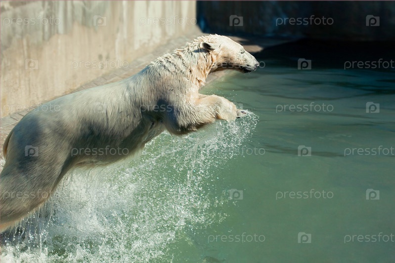 Белый медведь прыгает в воду
