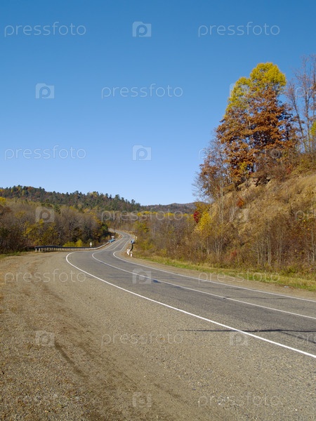 Горная дорога и осенний лес