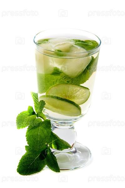 Чай с мятой и лаймом,изолирован на белом фоне