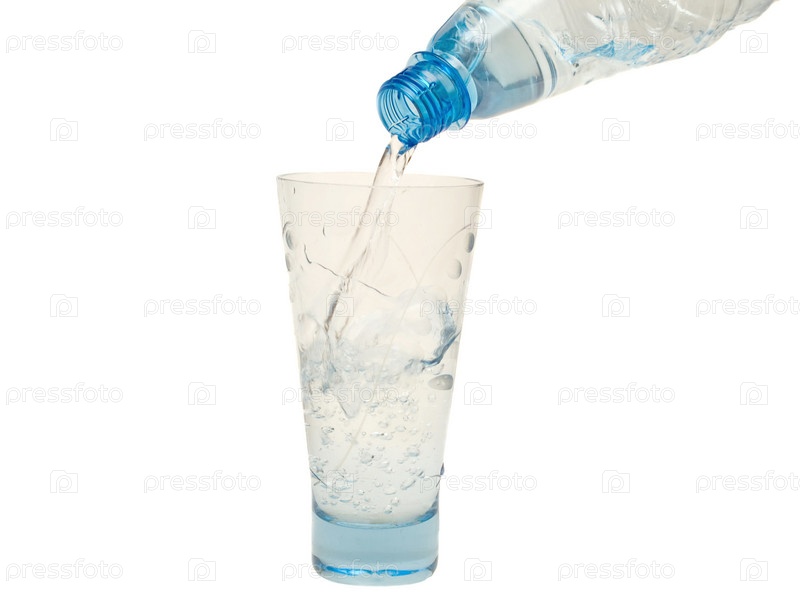 Из бутылки в стакан наливается вода