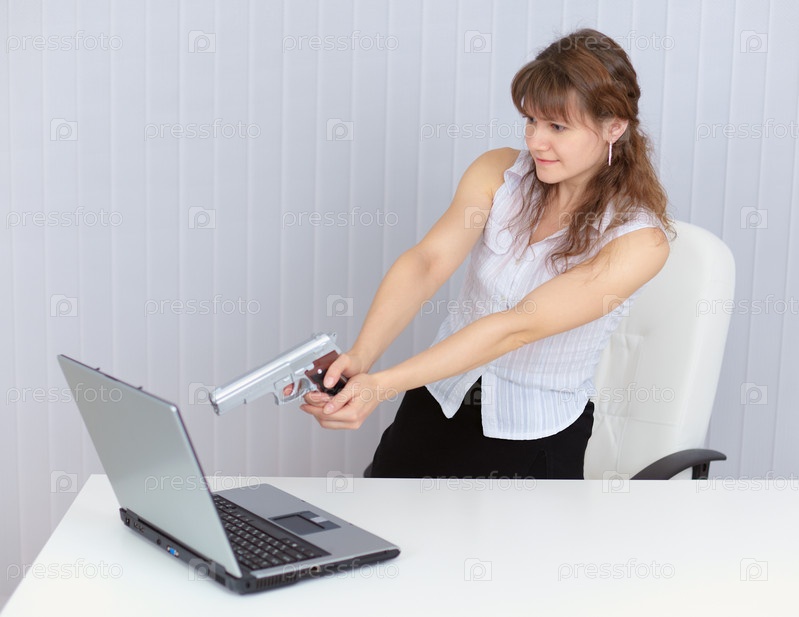 Женщина спокойно выстрелила из пистолета в компьютерный экран