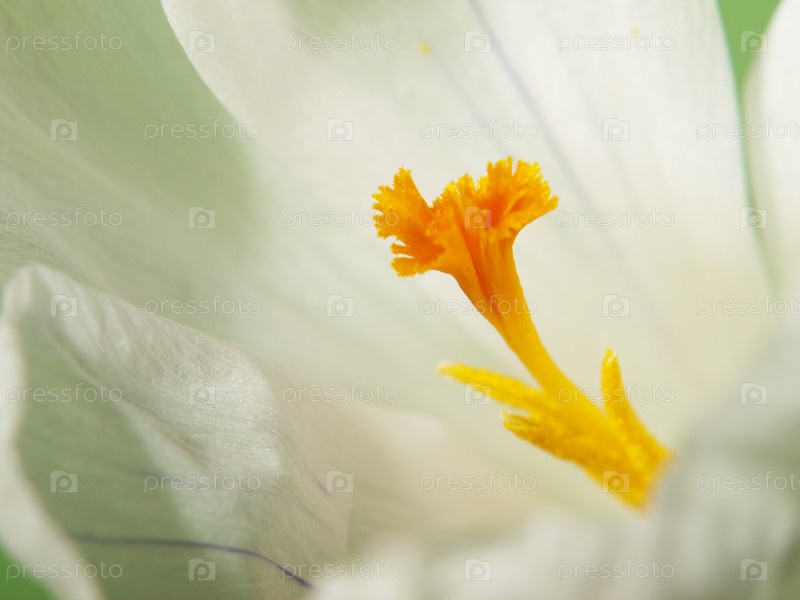 Белый цветок крокуса на зеленом фоне
