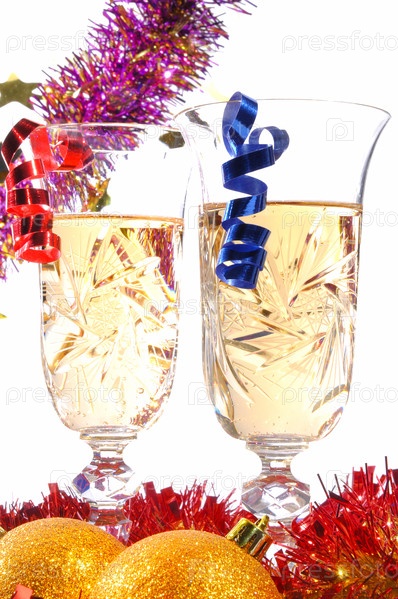 Два бокала шампанского на белом фоне