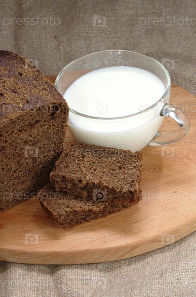 Ржаной хлеб и стеклянная чашка молока