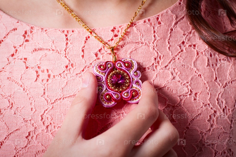 Розовая подвеска в технике сутаж