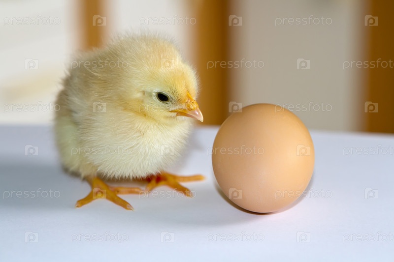 Маленький желтый пушистый цыпленок и яйцо