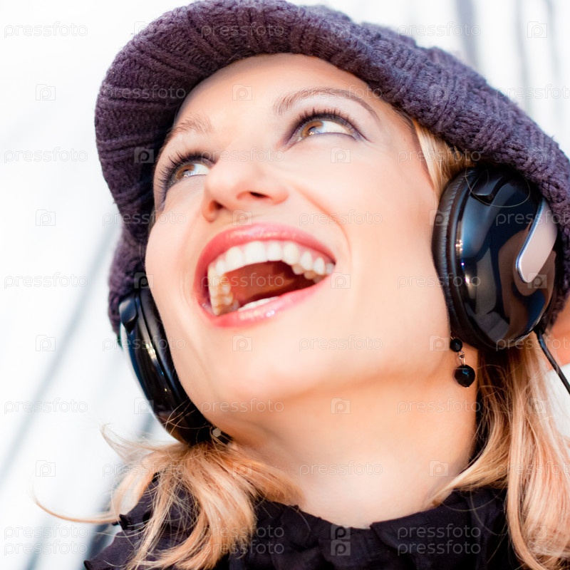 Блондинка слушает музыку