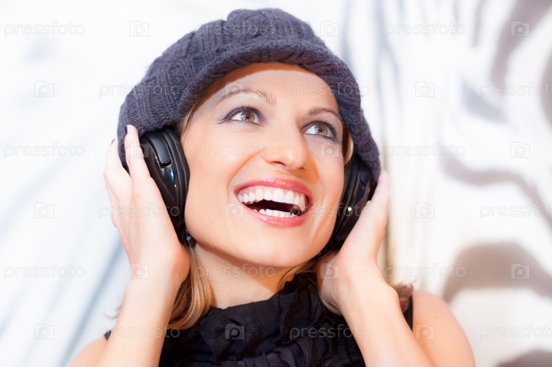 Блондинка слушает музыку
