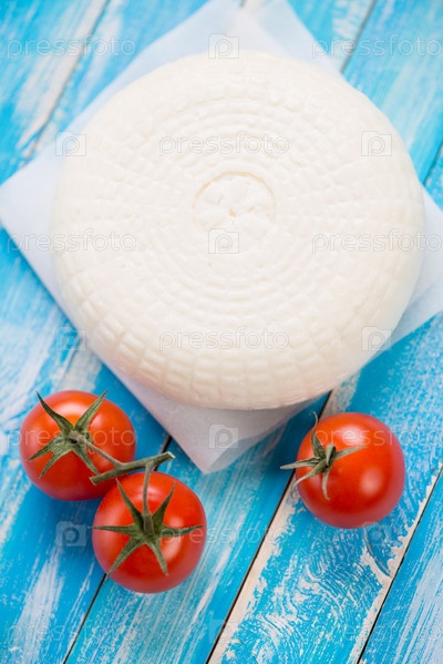Адыгейский сыр и красные томаты черри, вид сверху