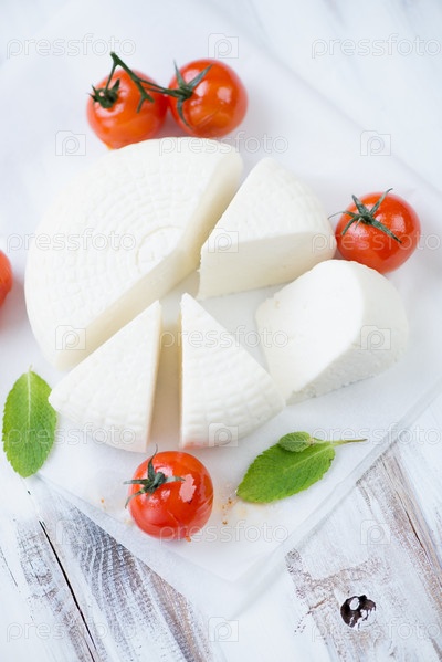 Адыгейский сыр с запеченными помидорами черри и листьями мяты