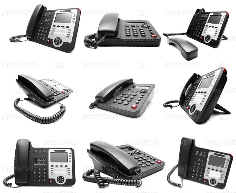 Стационарные телефоны на белом фоне