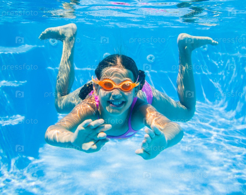 Девочка плывет под водой