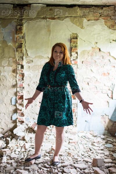 Рыжеволосая девушка позирует на свежем воздухе