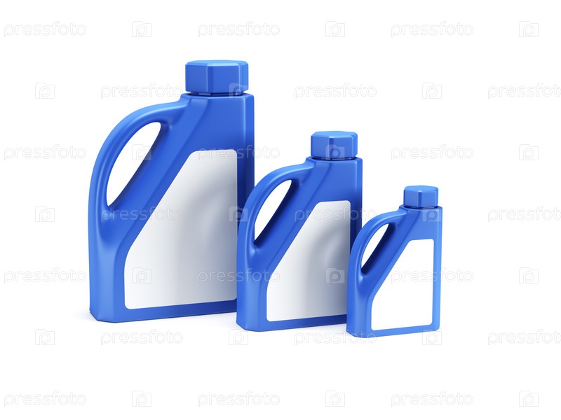 Три бутылки моторного масла на белом фоне
